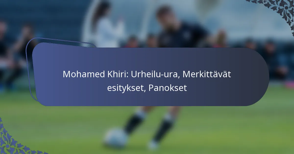 Mohamed Khiri on tehnyt merkittäviä panoksia jalkapalloon vaikuttavien suoritustensa ja keskeisten siirtojensa kautta eri seuroissa. Hänen uraansa leimaavat huomattavat saavutukset, palkinnot ja kiistaton vaikutus joukkueiden menestykseen.